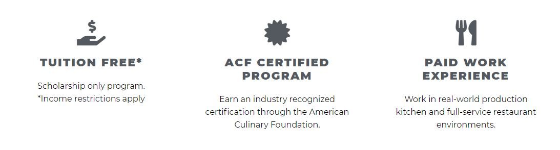Learn the fundamentals of food preparation hands-on in a working full-service restaurant. Apprentices spend 16 weeks at Taste Project’s Taste Community Restaurant serving breakfast, lunch, and brunch during its pay-what-you-can meal service and preparing multi-course dinners for evening events. While completing work at Taste Community Restaurant, Apprentices are enrolled in the American Culinary Federation (ACF) Certification program and receive job placement support.