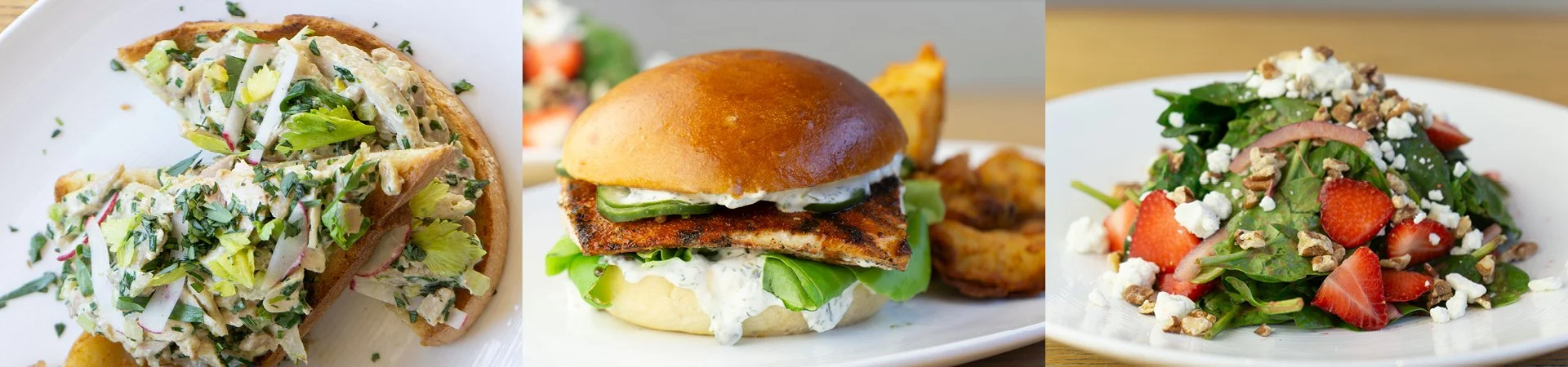 Spring is here! This season is marked by asparagus, pea, and strawberry flavors. Initial favorites include our Chilled Asparagus Vichyssoise, Grilled Mahi Mahi Sandwich, Oklahoma Onion Burger, and our Salsa Verde Steak!